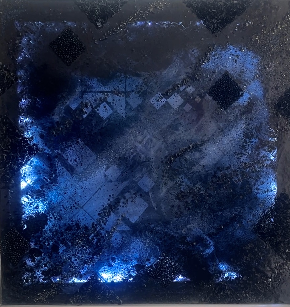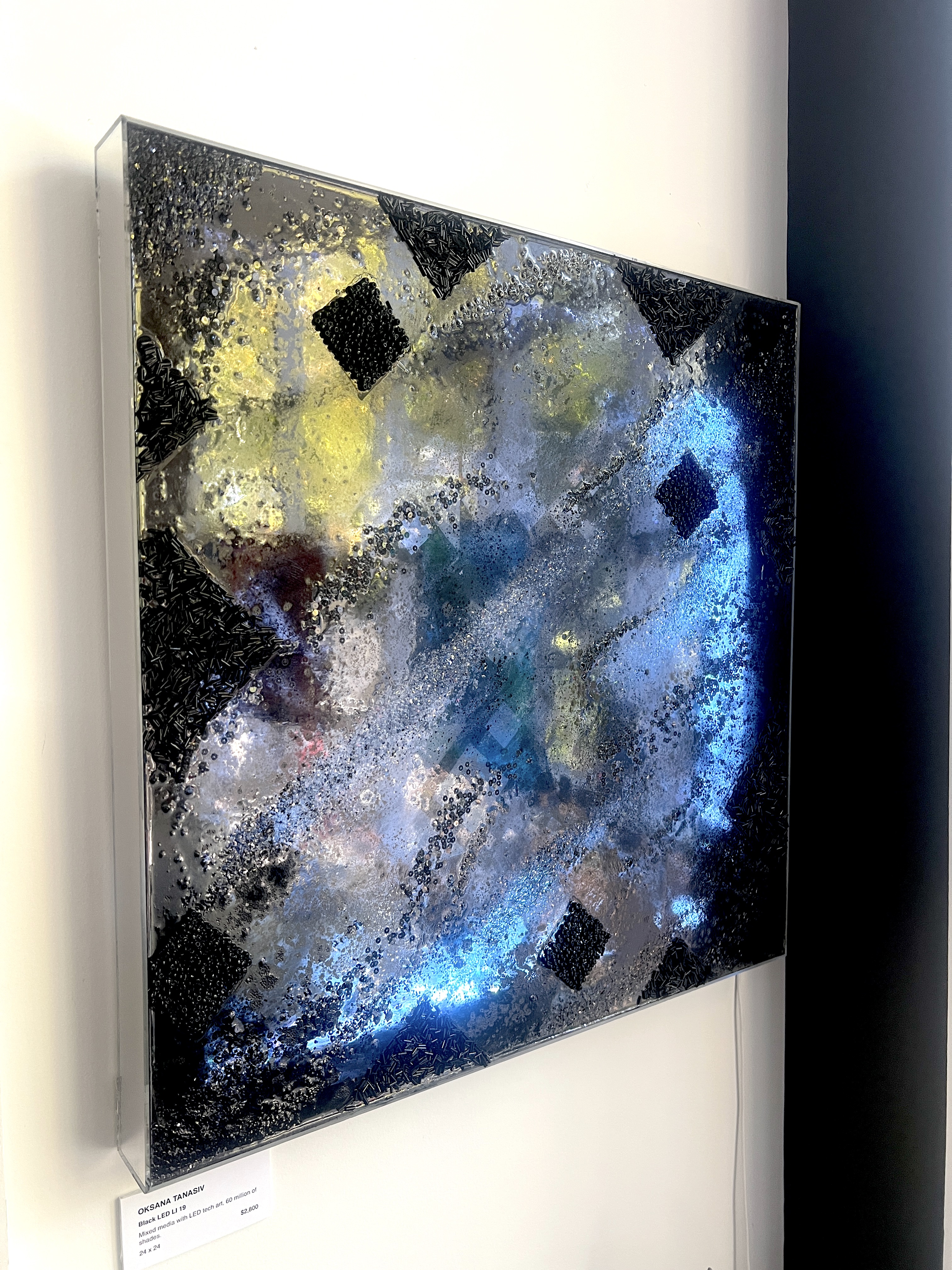 Mixed Media – plexi glass, epoxy, natural stones, mosaic, beads, LED, wood)